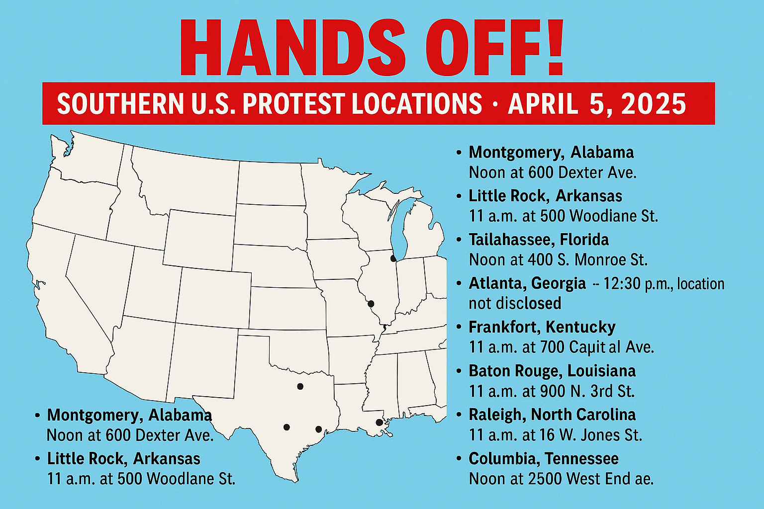 Today, streets across the United States—including more than a dozen in the South—will fill with chants, signs, and protestors demanding action. The “Hands Off” movement, organized by a coalition of nearly 200 progressive groups including Third Act, Move On, Women’s March, Planned Parenthood Action Fund, and Democratic Socialists of America, is calling for nationwide resistance to the return of Donald Trump, Elon Musk’s rising influence, and what they see as the rapid unraveling of democracy.